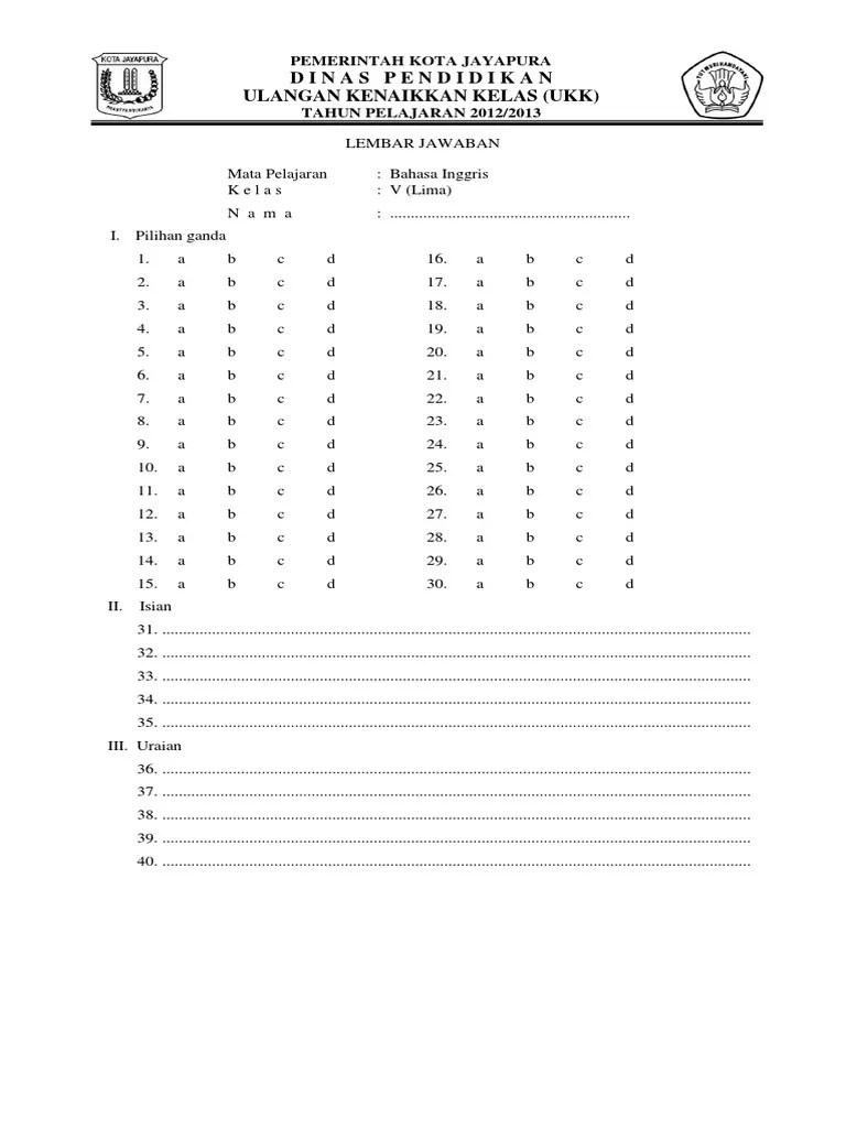 Lembar soal dan jawaban eksplorasi . Template lembar jawaban tidak berlaku untuk soal yang bersifat multiple choice dan pembuatan makalah. Koleksi admin mengenai contoh lembar jawaban pilihan ganda dan uraian doc. Dan dapat menghasilkan laporan hasil ujian seleksi secara cepat dan akurat 4. Beri tanda silang (x) dari pilihan jawaban yang anda anggap benar.